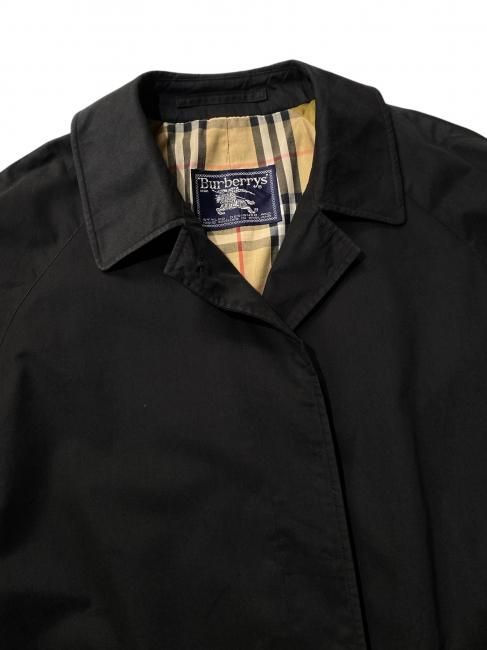 80's Burberry's Cotton/Poly Balmacaan Coat BLACK MADE IN ENGLAND