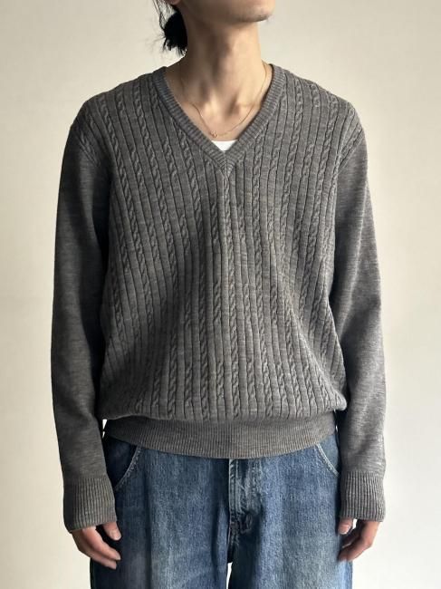 90's Cable Switch Design Wool High Gauge V-neck Knit MADE IN ITALY