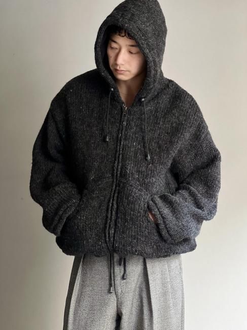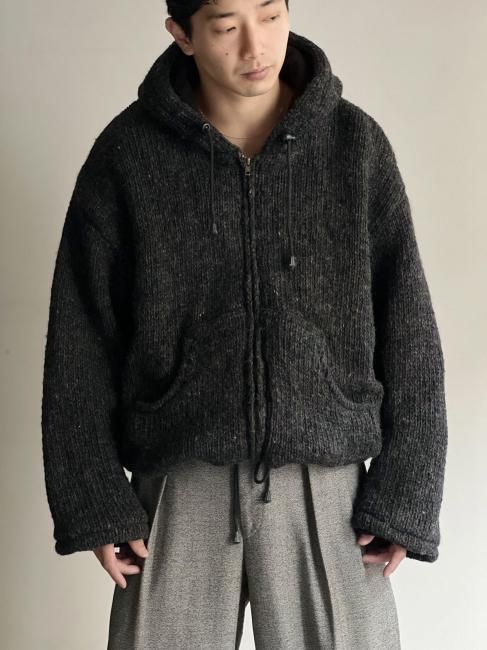 90s Heavy Wool Knitting Hooded Jacket