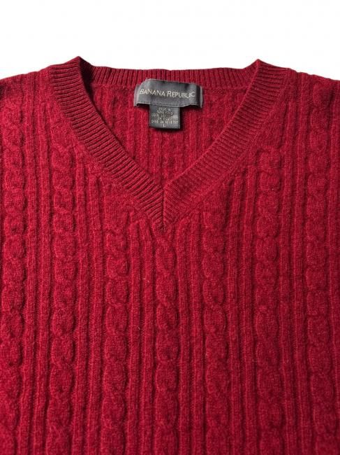BANANA REPUBLIC Lambs Wool Cable V-neck Knit