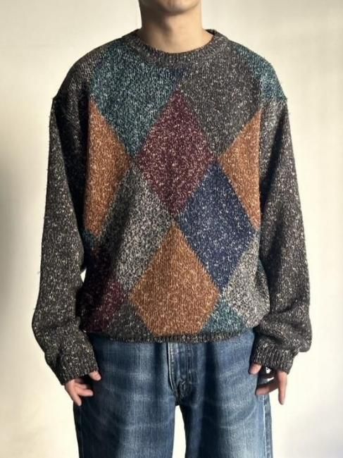 90s Harry's Blue Melange Argyle Knit MADE IN ITALY