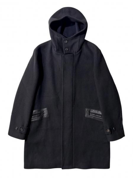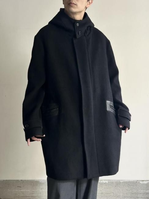 dunhill Lamb-skin Switching Wool Fooded Coat MADE IN ITALY