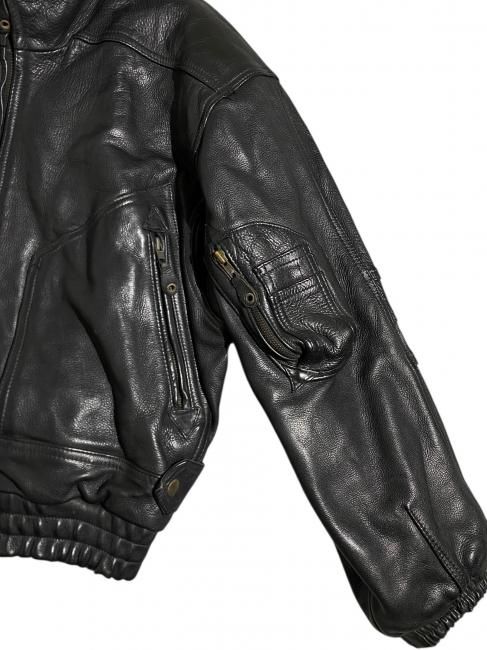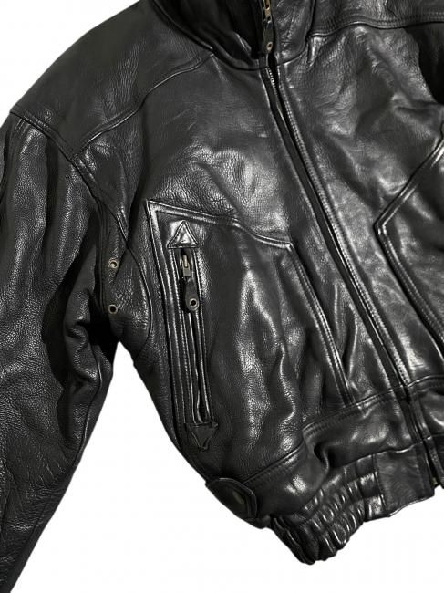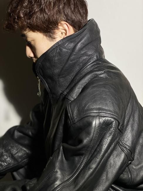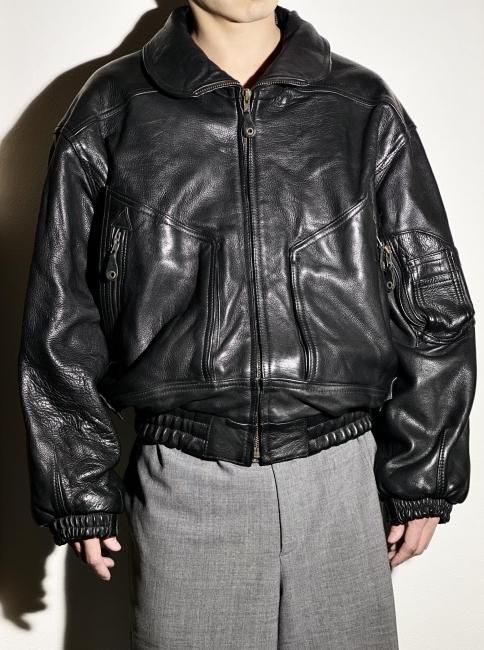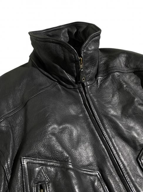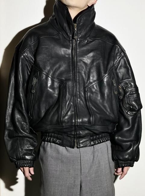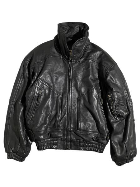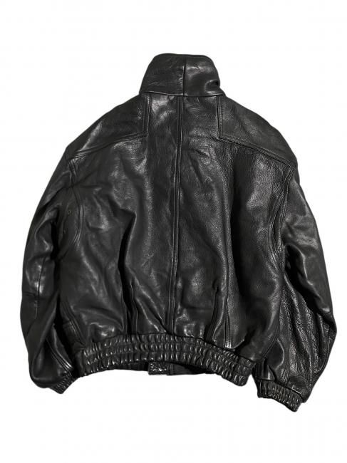90s High-neck Design Leather Bomber Jacket