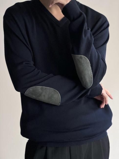 CRUCIANI Elbow Patch Wool V-neck Knit MADE IN ITALY